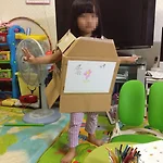 종이박스를 이용해서 갑옷을 만들었습니다.옷을 입는 것처럼 양 팔을 벌려서 머리에서부터 쓰는 방식입니다.이 방식이 좋은 점은 아이 스스로 갑옷을 입고, 벗을 수 있다는 것입니다. 박스의 좌우에 손이 나올 구멍을 만들어주고, 머리가 들어갈 정도로 위 공간을 좁혀 줍니다.박스가 너무 크면 흘러 내리고, 너무 작으면 들어가지 않기 때문에 머리가 들어가고, 어깨에 걸려서 내려가지 않을 정도의 크기로 만들어야 합니다.한번에 완벽하게 만들려고 하지 말고 아이에게 입혀 보면서 크기를 조절하는 것이 좋습니다. Point2013년 10월 6일몸체 앞부분에 아이가 그린 그림을 붙여보세요.준비된 그림이 없다면 종이를 붙이고 함께 그려보세요.