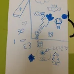 염색용 색종이를 이용해서 옷을 꾸미기로 했습니다. 어떤 모양을 옷에 넣을 건지 아이와 함께 A4용지에 그려봤습니다. 구름, 하트요정, 꽃과 물뿌리개, 나비 등등 넣고 싶은 것들이 많네요. 완성된 모습입니다. 그림과 거의 똑같이 만들어졌네요. ^^ 만든 날: 2015년 4월 12일
